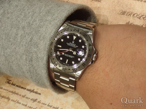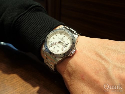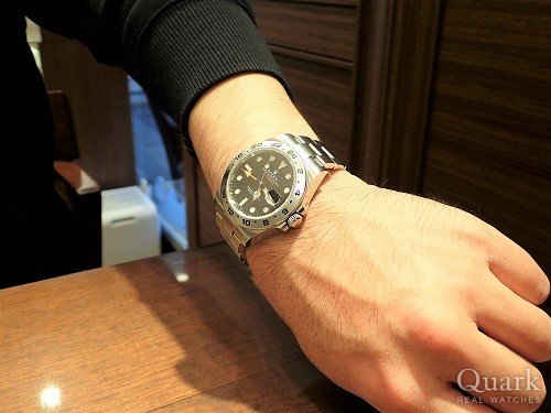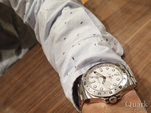 O様 この度はクォーク福岡店をご利用いただき、誠にありがとうございます。爽やかなホワイトダイヤルと迫力のある42ミリケースは、ご愛用のROLEXとはまた違い、新鮮だったのではないでしょうか。注目の集まるエクスプローラーIIを是非合わせてご愛用頂ければ幸いでございます。また近くまでお越しの際はブレスレットの洗浄も兼ね、お気軽にお立ち寄り下さいませ。今後とも末永いお付き合いの程、宜しくお願い致します。