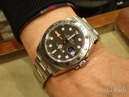 K様 いつもクォーク横浜店をご利用いただき誠にありがとうございます。先代エクスプローラーIIとなるRef.16570ですが、スポーティーなデザインとお洒落な赤い24時間針の組み合わせが高い人気を誇るモデルです。スポーツモデルではホワイトダイヤルの種類が少ない為、その点においても大きな魅力がございます。偶然とはなりましたが、奥様のお時計と同じ年式というのもご縁を感じましたね。また何かご所望の際には是非お声がけください。今後とも変わらぬご愛顧の程、宜しくお願い申し上げます。 クォーク横浜店 濵松
