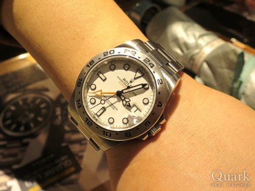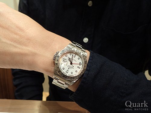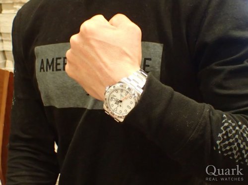 T様 昨日はお忙しい中ご来店頂き、有難うございました。エクスプローラーII(Ref.16570)の白文字盤でお探しだったT様。初めてご購入頂くロレックスのお手伝いが来た事を大変光栄に思っております。スポーツモデルの中でも数少ない爽やかな白文字盤はこれからの暑い夏を迎えるにあたりピッタリのお時計でございます。是非たくさんお使い頂き、楽しいロレックスライフをお過ごし下さい。次はブレスレットの洗浄でお待ちしております。