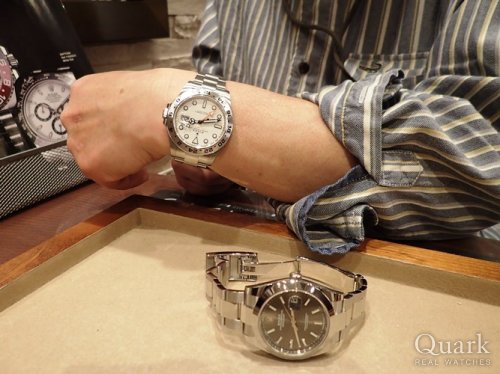 T様 いつもクォーク仙台店をご利用くださいまして誠にありがとうございます。T様のお買い物のスピードの早さ、驚きました。もう少し悩んでいただいても良かったのですが(笑)。お値段の高騰も見られるRef.216570、プライベートでたくさんご愛用くださいませ。スーツにもお似合いでございましたので、機会があればお仕事でも使っていただけましたら嬉しいです。42mmケース径とオシャレなオレンジ針は、まわりの方から視線をあびてしまうかもしれませんね♪ご家族にもぜひ自慢してください。これからの時期はさらに、覚悟した方がいいかもしれませんね(笑)。そして、まさか、ご購入いただきました日からまもなく、またお会いできるとは・・・嬉しい限りでございます。お仕事用のあちらもいつまでも可愛がってあげてください★これまでもたくさんお時計をお持ちなので、使い方も問題無さそうで良かったです。店頭にてブレス洗浄、サイズ調整を無料で承っておりますので、お時間がございましたら、またお店にも遊びに来てください。引き続きT様にロレックスライフを楽しんでいただけますよう、しっかりお手伝いさせていただきますので、気になることがございましたら、いつでもご相談くださいませ。これからさらに『今日はどれをつけようかな~』なんて迷っちゃいそうですね。それではこれからも変わらぬご愛顧を賜りますよう、宜しくお願い申し上げます。