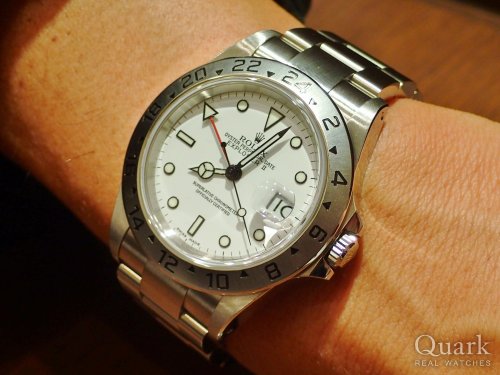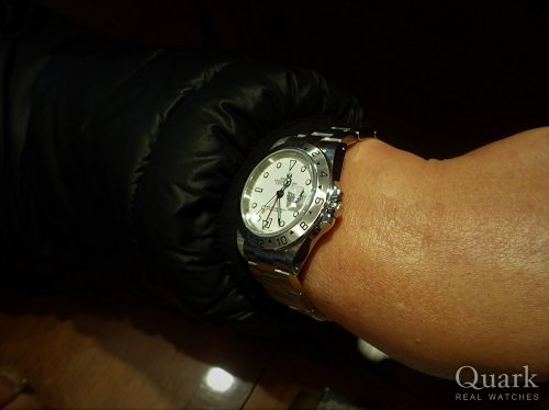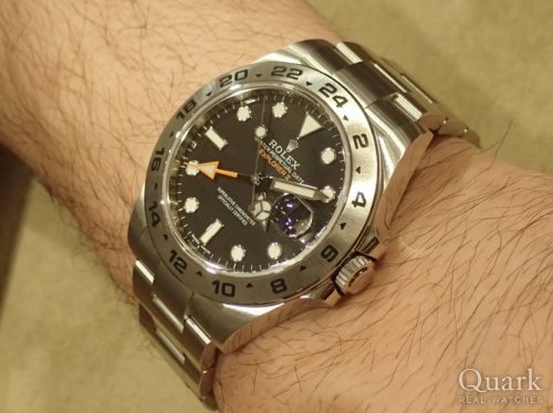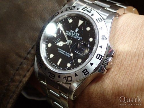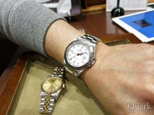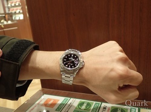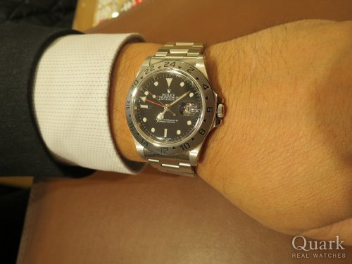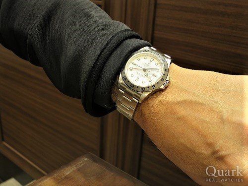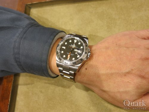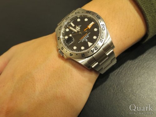 前からEXPLORER IIは欲しかった。216570の黒文字盤とも考えたが、サイズ的にもRef.16570 黒文字盤の方が私に合うと思いRef.16570 黒文字盤で検討。今回紹介して頂いたRef.16570の2009年製造モデルは、私にとって記念の年でもあり、素晴らしいコンディションだったので、紹介して頂いて直ぐに購入を決めました。