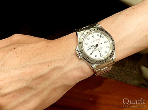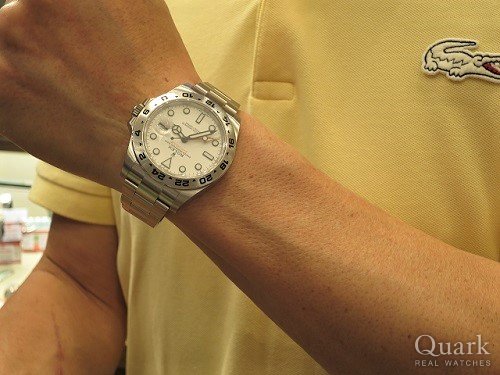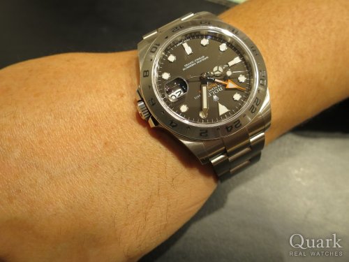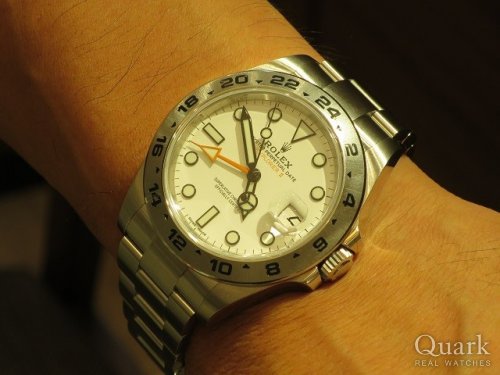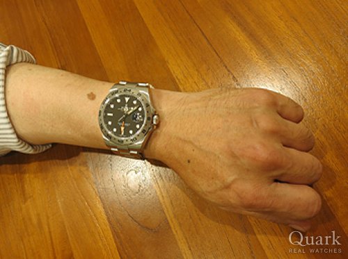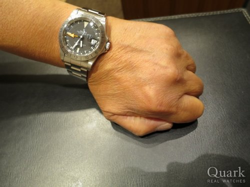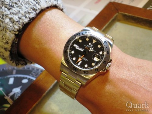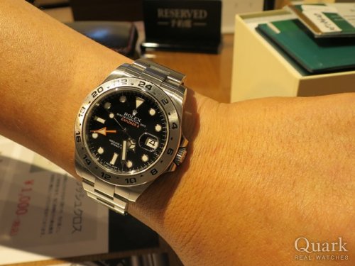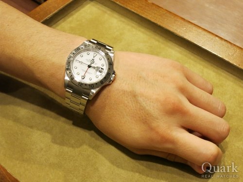 いつもクォーク横浜店をご愛顧賜り誠にありがとうございます。先週のご購入から間もないので、お電話をいただいた時には驚きましたが、夏らしくダイバーズ系は使い勝手が良いと思いますし、オススメでもありましたが・・・まさかのエクスプローラーIIになるとは!(笑) しかしながら、理由を聞いて納得しました。N様が仰るように多くのスポーツモデルが黒文字盤を採用しておりますので、白文字盤は変化があって満足度が高いと思います。少し大きめなケース径ですが、やはりN様の鍛え上げられた腕元にはとてもとても似合っておりました!次はサブマリーナーデイトとお話をいただきましたが、またいつでもご相談くださいませ。またお会いできる日を楽しみにしております。 クォーク横浜店 長本
