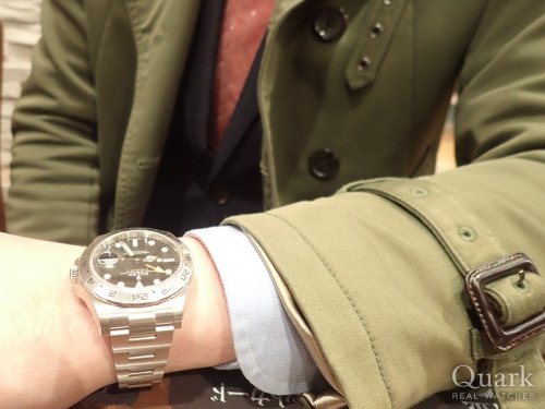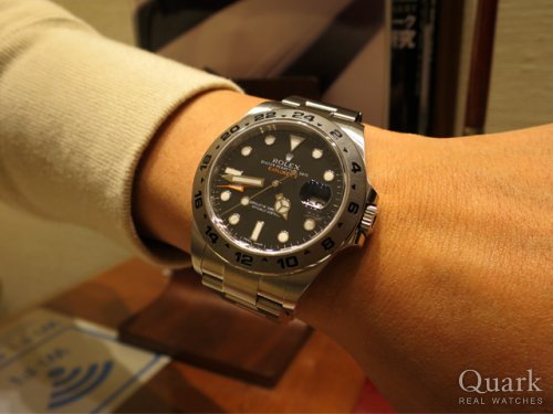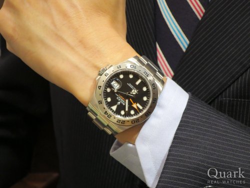 いつもクォークをご愛顧賜り誠にありがとうございます。2012年より40ミリから42ミリに変更されたエクスプローラーIIは、その大きさ故に着けこなすのが難しいモデルの一つだと私は思っておりますが、H様の腕元にとても馴染んでおり、素敵なスーツ姿にも大変似合っておりました。お仕事使いにも問題ないお時計ですので、この1本あればどんな場所にも着けていけると思います。これまで数々のロレックスをご愛用いただいたH様からのご意見や感想を是非お聞かせくださいませ。今後ともよろしくお願いいたします。 クォーク横浜店 長本