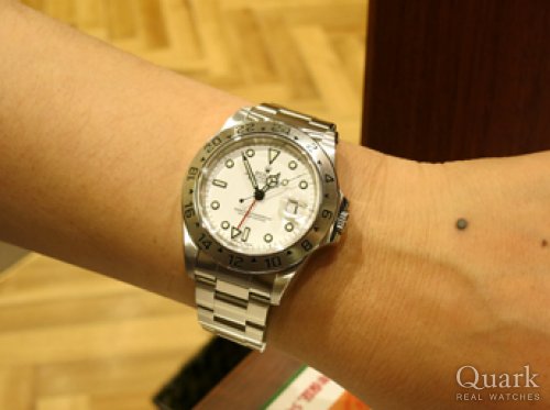 O様 いつも弊社をご利用下さいまして、誠にありがとうございます。じっくり見比べお選び頂いた今回のエクスプローラー2は、42mmの迫力のあるケースに日付表示、GMT機能が備わった高機能スポーツモデルになります。このような記念のお品物に、微力ながらお手伝いさせて頂く事ができたことは大変光栄で嬉しく感じております。今後はお持ちのエクスプローラーIとのお使い分けをお楽しみ頂けましたら、幸いでございます。ご使用いただく上でサイズや気になる点等ございましたら、お気軽にお申し付け下さい。末永いお付き合いの程、宜しくお願い致します。クォーク銀座888店 佐藤