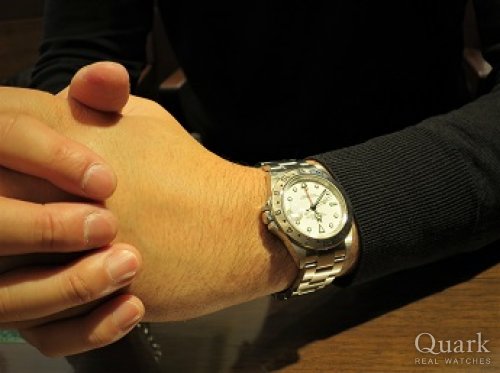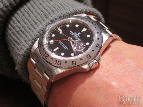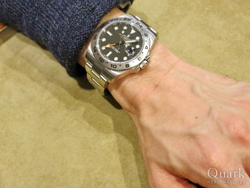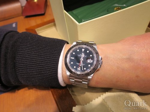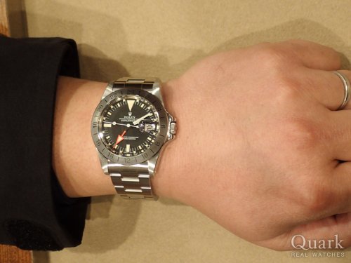 H様 本日はお忙しい中ご来店頂き、有難うございます。色々なお店を巡り、最高の相棒を探されていたH様。そんな最高の相棒になるお時計のご案内をお手伝いできたこと、大変光栄に思っております。シンプルなデザインのエクスプローラーIもご検討頂いていたと伺いましたが、24時間の彫りこみが入るベゼルと赤いGMT針のアクセントのきいたエクスプローラーIIはH様にとてもよくお似合いでございました。途中お待たせする場面もあり、申し訳ございませんでしたが、無事お渡しできたことを嬉しく思います。是非ご愛用されているサブマリーナーと比較してお楽しみ頂き、最高のロレックスライフをお過ごし下さい。今後ブレスレットの洗浄は無料になりますので、新宿に遊びにいらした際にお立ち寄り頂けたら幸いです。それではH様、本日は誠に有難うございました。今後とも宜しくお願い申し上げます。