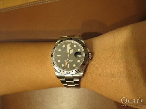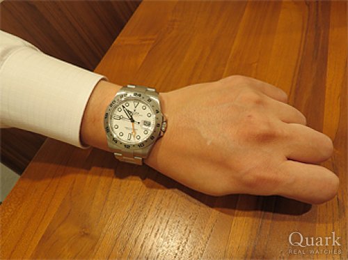 中古でもしっかりとした品質で信用ができるクォークさんで購入を決意しました。個人的にはエクスプローラーIIの白文字盤でカジュアル過ぎない高級感と爽やかさが気に入りました。
