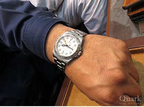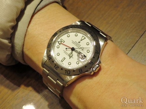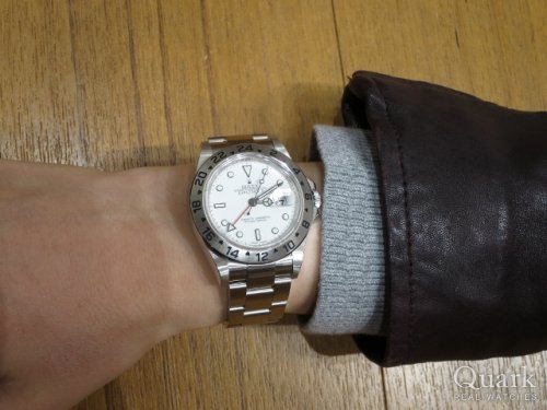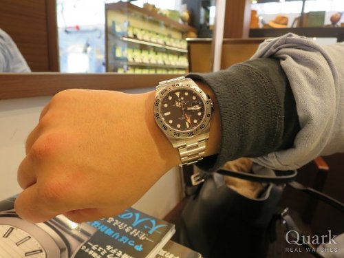 K様 この度はクォーク名古屋店をご利用頂き、誠にありがとう御座います。色々なモデルとも見比べましたが、第一印象のエクスプローラーIIでしたね。サイズ以外にも、針やインデックスの大型化によって、視認性が良く実用性の高いモデルです。現行モデルの装着感や重厚感の着け心地は良く、これからも末永くご愛用頂けると思います。海外へよく行かれるとの事なので、K様に心強い相棒になって頂けると存じます。今後もご相談等が御座いましたら、お気軽に私までご連絡下さい。名古屋にお戻りの際は、ブレス洗浄を兼ねて遊びにいらして下さい。今後とも末長いお付き合いの程、宜しくお願い致します。