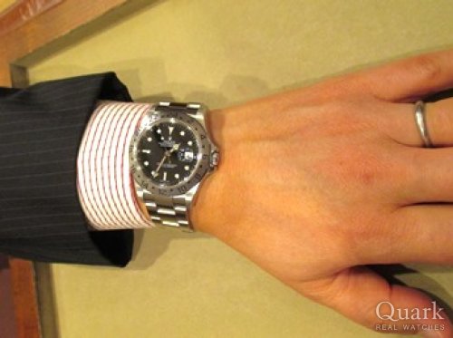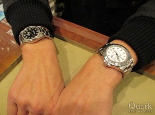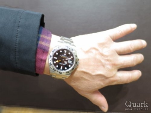 F様、この度はクォーク仙台店をご利用頂き、誠にありがとうございます。また、お忙しい中、お写真とコメントを頂戴しましたこと、重ねて御礼申し上げあげます。エクスプローラーII(Ref.16570)は、他のどのモデルにもない独特な武骨さが魅力のモデルでございます。さらに一見シックなデザインですので、カジュアルな装いは勿論、スーツにも抜群の相性です。拘りをもってお選び頂きましたお時計を、末長くご愛用頂けますよう、引き続き精一杯サポートさせて頂ければと存じます。今後とも、何卒宜しくお願い申し上げます。