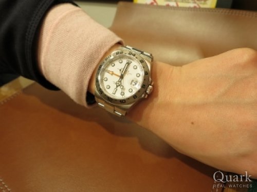H様 この度は、ご来店ならびにご購入頂きまして誠にありがとうございました。ご購入頂きましたエクスプローラーⅡは、中古品の中でも高年式で状態も抜群に良く、自信を持ってオススメする商品です。前型からサイズアップした42ミリのケース径はH様の腕元にピッタリで大変似合っておりました。どんな時でも時間を共にする相棒としてこれから沢山使ってあげて下さいね。またこちらにお越しの際は、ブレス洗浄等お気軽にお立ち寄り下さいませ。今後とも長いお付き合いの程宜しくお願い致します。