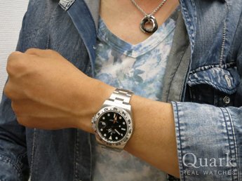 Y様 この度はクォーク梅田店にお越し頂きまして誠にありがとうございます。黒文字盤から白文字盤に変わるだけでもがらりと印象が変わりますよね。Y様のこんがり焼けた肌に白文字盤のEXPLORERⅡがとってもよくお似合いでした。より一層白文字盤が際立っています!かっこいいです!又視認性も高いので、これからもじゃんじゃんご使用頂ければと思います。又気になる事がございましたらいつでもご相談下さい。ありがとうございました。  クォーク梅田店 大浦