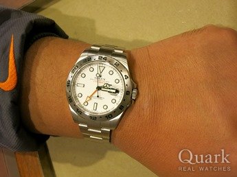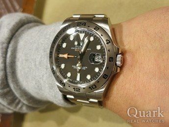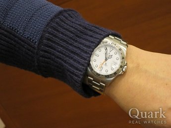 F様 この度は、クォーク心斎橋店をご利用頂きまして誠にありがとうございました。ご購入頂きましたエクスプローラーⅡは、サイズアップにより存在感も増しておりますし、また初代モデルを彷彿させるデザインとなります。サイズもF様にはぴったりでしたので末永くご愛用頂ければ嬉しく思います。時計のメンテンンスも行なっておりますので、いつでもお気軽にご来店下さいませ。今後ともクォークを宜しくお願い致します。    クォーク心斎橋店 西川