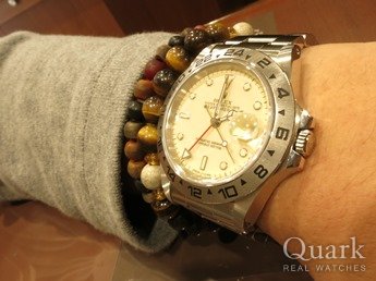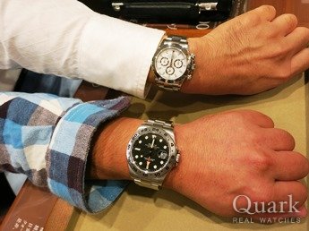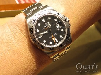 S様 この度は、私共クォーク仙台店をご利用頂き、誠に有難う御座いました。ホワイト文字盤も爽やかな印象で、ブラック文字盤と同じくらいの人気となっていますが、初めに決めていたブラックでしたね。腕元が引きしまり、格好良かったです。42ミリという存在感のある大きさなので、これから長袖の季節になっても、袖口から見えるエクスプローラーII が周囲の目を引くのではないでしょうか。機能面では、2ヶ国の時間表示が可能で、操作が他のモデルとは若干異なります。これからご使用頂き、ご不明な点等が御座いましたら、お気軽にお問い合せください。また、お時間が御座います際には、ブレスクリーニングを兼ね、ご来店頂けましたら幸いです。今後とも、どうぞ、宜しくお願い致します。 クォーク仙台店 麻生