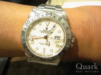買い物の途中で寄ったクォークさんで、以前より気になっていたRef.1655 オレンジ針の時計を発見!!Ref.1680 赤サブと迷いましたが、70年代テイストが搭載されたRef.1655に決めました。友人の後押しと、対応スタッフの気持ち分値引いて頂けたのも購入の決め手になりました。また遊びに行きます!!