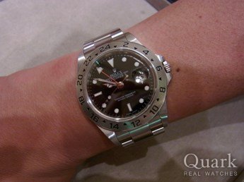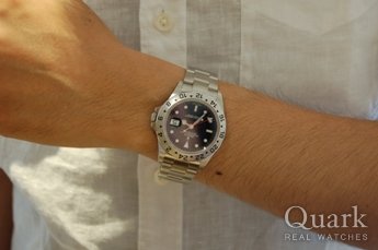 一生使える時計の購入を検討しており、オメガなどいろいろな時計は所有していたが、エクスプローラーIIはモデルが変更になったことが決め手となりました!!試着し私にはこの大きさが一番しっくりときました(笑)