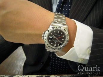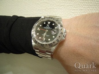 クォークさんでお世話になるのは3回目となります。今回はビジネス用でスーツに合せられる時計が欲しく、軽量ながらも40mmサイズの存在感あるエクスプローラーⅡにしました!白文字盤とは最後まで悩みましたが、黒文字盤の高級感漂う雰囲気が決め手となりました。今持っているターノグラフを白文字盤に変えて使いたいと思います!