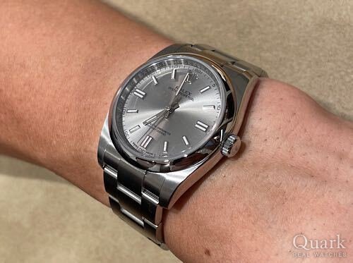 S様この度はクォーク福岡店をご利用頂きまして誠に有難う御座います。お求め頂きました【EXPLORER I / Ref.214270】は36㎜ケースの新作発表後に更に注目を集めたモデルです!同じモデルを持つ私も今後の動向が楽しみで御座います。シンプルながら洗練された本モデルはS様に良くお似合いでございました!ご購入後もアフターサービスに努めさせて頂きます。気になる点等御座いましたら、遠慮なく御相談下さいませ。また、お時間ございましたらブレス洗浄も兼ねて福岡店にお立ち寄りください。