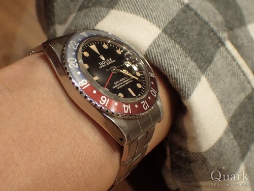 K様 いつもクォーク福岡店をご愛顧賜り誠にありがとうございます。今回のGMT-MASTERは60年代特有のミーダイヤルに雰囲気良く退色したベゼル、リベットブレスを装備したヴィンテージらしさを存分に楽しんでいただける個体です。70年代や80年代とはまた違う魅力を楽しんで下されば幸いでございます。今後とも宜しくお願い申し上げます。