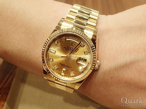お求め頂きました『DAYDATE / Ref.118238A 』は煌びやかなシャンパンダイヤルにダイヤの組み合わせは華やかさと存在感抜群な1本です!