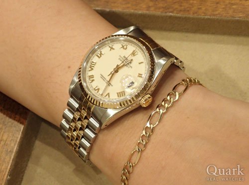 M様、この度はクォーク福岡店をご利用頂きまして誠にありがとうございました。商品のご用意までお日にちを頂いてしまい申し訳ございませんでした。お選び頂きました『DATEJUST Ref.16233』は、ファッションシーンにも溶け込む高級感が魅力の人気モデルです。また、『アイボリーローマダイヤル』が、トータルバランスをより一段と上品な雰囲気を醸し出してくれます。M様にお気に召して頂き私も大変嬉しく思っております。お仕事お忙しいかとは思いますが、お時間ございましたら是非またクォーク福岡店に遊びにいらしてください。ありがとうござました。