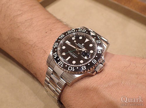 カレンダー付きのモデルを探していて、GMT、SUB等で悩みましたが、トリチウム夜光で綺麗なGMTマスターに出会いこのモデルに決めました。