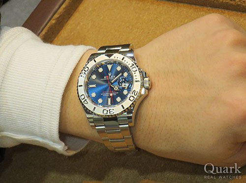 H様、この度はクォーク福岡パルコ店をご利用頂き誠にありがとうございました。お求め頂きました『ヨットマスター Ref.116622 ブルーダイヤル』は、ベゼルにプラチナを使用したラグジュアリーモデルで、高級感は他のスポーツモデルと比べても別格です。また、光の当たる角度によって様々な表情を見せるダイヤルの深みあるブルーと赤い秒針・モデル表記との色合いのバランスも抜群でとても綺麗です。H様に末永くご愛用頂けますようサポートさせて頂きますので、今後ともクォーク福岡パルコ店を宜しくお願い致します。