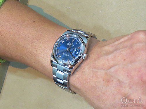 H様、この度はクォーク福岡パルコ店をご利用頂き誠にありがとうございました。フランスからのお問い合わせ、ご来店大変嬉しく思っております。お求め頂きました『DATEJUST Ref.116200 ブルーローマダイヤル』は、光の当たり具合によって表情豊かな高級感を演出してくれるサンレイ仕上げのダイヤルとDATEJUSTならではの美しいボディラインがマッチした人気スタンダードモデルです。