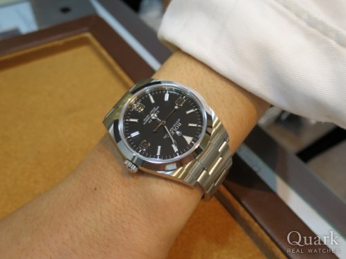K様 この度は数ある時計店の中からクォーク福岡店をご利用頂きまして誠に有難う御座います。エクスプローラーIの着け心地はいかがでしょうか?シンプルなデザインながらもしっかりとした存在感を持っているRef.214270は、これから様々な場所で大活躍となるはずです!! 今後はRef.214270も仲間に入れて頂き、素敵なロレックスライフをお過ごし下さいませ! ブレスのクリーニング・サイズ調整等いつでも行いますので、またお気軽にお立ち寄り下さいませ。今後もクォーク福岡店を宜しくお願い致します。