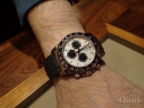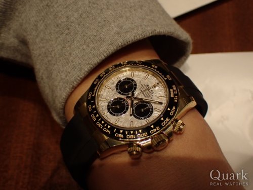 H様 この度は数ある時計店の中からクォーク銀座店をご利用いただき誠にありがとうございます。念願だったDAYTONA Ref.126518LN(メテオライト)のご購入おめでとうございます!ご購入いただきましたRef.126518LN(メテオライト)は同じ模様の文字盤は存在しないと言われており、様々な角度からもお楽しみいただけるお時計かと存じます。入荷数も非常に少ない為、H様にタイミング良くご紹介が出来たこと嬉しく思います。ブレスレットの洗浄及び調整も無料で行っておりますので、お近くにお越しの際は遊びにいらしてくださいませ。お使いいただく上で何かご不明な点等ございましたら、また林までご相談ください。今後とも末永いお付き合いの程よろしくお願いいたします。