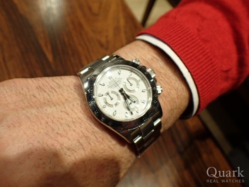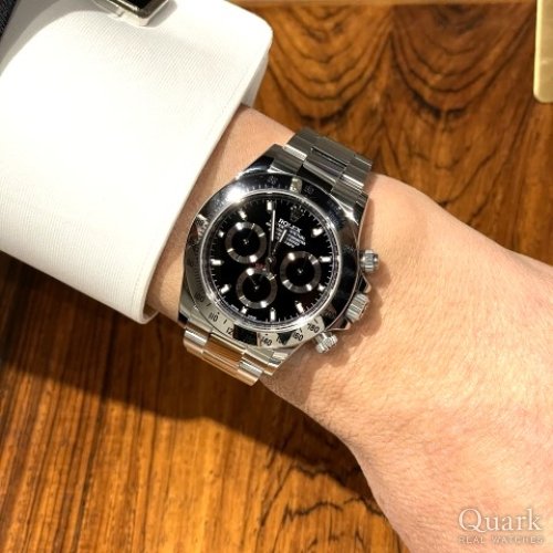 H様 この度は数ある時計店の中からクォーク銀座店をご利用いただき誠にありがとうございます。2016年製、DAYTONA Ref.116520(黒)のご購入おめでとうございます!こちらの商品は2000年~2016年まで生産がされていた大人気のモデルでございます。特に2016製のデッドストックは数も少なくご案内が難しいお時計となります。DAYTONA SALONのOPEN記念としてご紹介が出来たこと嬉しく思います。ブレスレットの洗浄及び調整も無料で行っておりますので、お近くにお越しの際は遊びにいらしてくださいませ。お使いいただく上で何かご不明な点等ございましたら、また林までご相談ください。今後とも末永いお付き合いの程よろしくお願いいたします。
