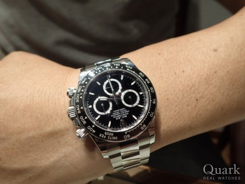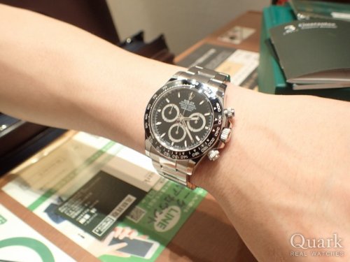 H様 この度は数ある時計店の中からクォーク銀座店をご利用いただき誠にありがとうございます。DAYTONA Ref.126500LN(黒)のご購入おめでとうございます! クロノグラフ機能の効率向上と信頼性の高さを実現したCal.4131はロレックスの完全自社開発となり、特許技術のクロナジー エスケープメントやパラクロム・ヘアスプリング、パラフレックス ショック・アブソーバなどを採用し、高い耐磁性や耐衝撃性を持ちます。フォルムのカッコよさはもちろんですが高級感のある黒文字盤も独特な雰囲気があり良いですね!ブレスレットの洗浄及び調整も無料で行っておりますので、お近くにお越しの際は遊びにいらしてくださいませ。お使いいただく上で何かご不明な点等ございましたら、また林までご相談ください。今後とも末永いお付き合いの程よろしくお願いいたします。