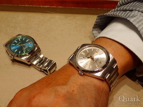 55歳誕生記念に購入。ロレックスの王冠マークと針等がゴールドでシルバーダイヤルのオイパ最高です!2年前に定年退官53歳誕生記念にミルガウスZブルーに続き購入できました!グリーンサファイヤガラス最高です。ダブルオイスター時計で人生頑張ります!!