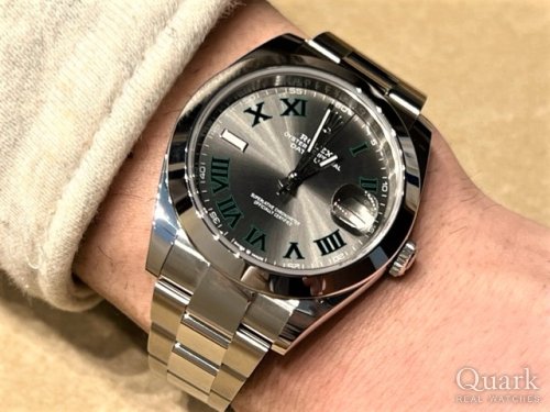 M様 この度は数多くある時計店の中より弊社をご利用いただき誠ありがとうございます。記念すべき初めてのロレックスご購入のお手伝いをさせていただきました事、心より嬉しく光栄に存じます。またいつも弊社をご愛顧頂いておりますK様、M様をご紹介いただきました事心より感謝申し上げます。終始お二人の気さくで明るい雰囲気に私も楽しくご対応させて頂きました。雰囲気の異なる5本のモデルを見比べていただき、お選び頂いたRef.126300のスレートローマは、デイトジャストの文字盤バリエーションの中でもお問い合わせを多く頂く人気モデルでございます。41mmのがっしりとしたサイズ感と、大人カッコイイ洗礼された文字盤デザインはM様に非常にお似合いでしたので、末永くご愛用頂けましたら幸いでございます。今後もご指名頂けますよう、しっかりとサポートをさせて頂きますのでご要望等ございましたら、私山田までお気軽にお申し付けくださいませ。また、ブレスレットの洗浄及び調整も無料で行っておりますので、お近くに来られた際には是非遊びにいらして下さい。心よりお待ち致しております。今後ともよろしくお願いいたします。 クォーク銀座888店 山田