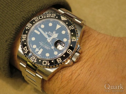 サブマリーナーととても迷いましたが、最近注目度が増しているGMTの青黒ベゼルに決めました。松田さんどうも有難うございます。