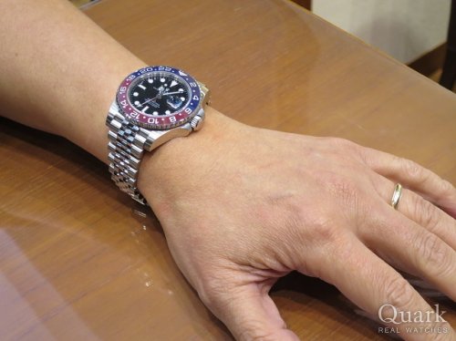 Thank you for coming to this store and purchasing the watch. It looks really nice on you. I hope you are satisfied with the watch. The watch you purchased at this store is really popular and hard to purchase in the world. Really happy to introduce you the watch you really wanted to buy. Finally, regarding the cleaning, we offer the complimentary service which is cleaning your watch bracelet and case. Please stop by our store when you come to Tokyo next time. Look forward to seeing you.