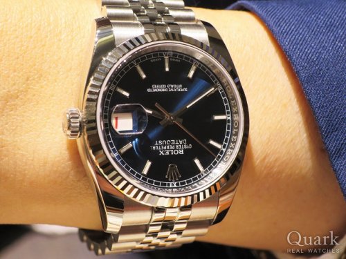 グリーンガラスの黒、Zブルーと散々悩んだ挙句、この時計にしました。ある意味ロレックス「らしくない」ところがとても気に入っております。嫌味なくどこへでも着けていける感じがします。