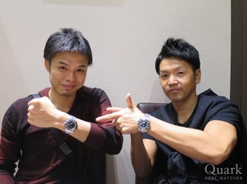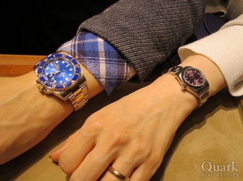 N様 この度は数ある時計店から当店をお選び頂き誠にありがとうございます。Ref.116613LB青サブは、独特のブルーの色とイエローゴールドとの相性は抜群な時計でインパクトと高級感を演出してくれます。また、旧型と比べると重みや重厚感も向上しており、ブレスレットの微調整も好きな時にどこでも出来るグライドロッククラスプも魅力的です。また、奥様の時計のオイスターパーペチュアルのご購入も誠にありがとうございます。他のモデルとも迷われていましたが、オイスターパーペチュアルは使いやすく、カジュアルな服是には抜群ですので、是非永くお使い頂けましたら幸いです。今後とも末永いお付き合い宜しくお願い申し上げます。