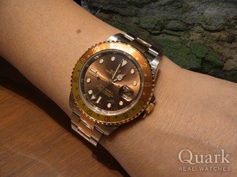 本日、久々に銀座888店に参上。 以前GMTのブラウンを所持していましたが、安易な考えのもと手放してしまいました。しかしながら、手放すとまた欲しくなる性分でして、今回は高年式のGMTブラウンということでいつもの須永さんにやっと探していただきました。やはり現行にはないまたアンティ-クにも見えるブラウンの文字盤とゴールドのマッチングが忘れることはできませんでした。今回は長く使用したいと思っています。いつもですが、須永さんには特に今回のブラウンはお手数とご迷惑をお掛けしました。今後もよろしくお願いします。 最後に3年保証価格で12年保証が付いてるのも決めてでした。押忍