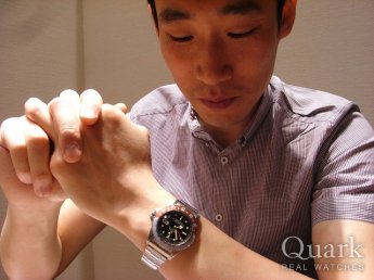 様々なROLEXの中、GMTマスターのデザインが好きになり、今までに金無垢やアンティークを始め、色々なモデルを入手しました。今回の16760は、ケースの分厚さやベゼルの色褪せ具合いに魅力を感じ、更に付属品も完備されているとの事で、一目で気に入ってしまいました。ファットレディと呼ばれる由来も含め、つい購入してしまいました。保証書の日付が偶然にも社会人になった歳月だったのも決め手です。これからも珍しいGMTマスター集めに精を出したいので、クォークの皆様、宜しくお願い申し上げます。