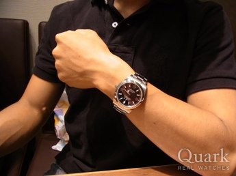 以前から良い時計が欲しいと考えていました。ハワイの正規店で見たピンクシェルローマが70万円位で、日本の並行輸入店だったら円高の影響でピンクシェルのダイヤ付きでも70万円台で買えるのではと思い、ネットで色々なお店を調べたところ、このお店に辿り着きました。ホワイトシェルの10Pとも迷いましたが、濃すぎない色目がどんな服装にも合いそうだなと思いピンクシェルに決めました。