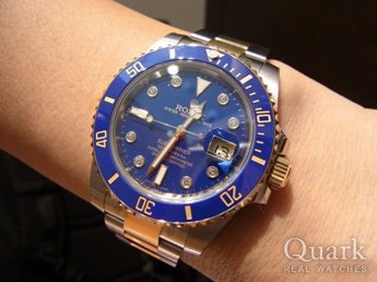 本日は、プレオープン以来の銀座888 店に参上! 今日は、ブルーサブの116613GLBを購入。以前、プレオープン時にブルーサブ116613LBを購入。 しかし、116613LBを購入してからも、8Pの116613GLBのゴージャス感、ダイヤ の輝き、また116613LBと同様、華美になりすぎず、スポーティーとエレガンスを兼ね備えた116613GLBが忘れられずにいました。今回、購入の資金面のタイミングと銀座888店の特有のプレオープン以来、いつもとかわらない心地よい空間もあり、即決で購入。スギちゃん風に言うと「グレードアップ してやったぜぇ!ワイルドだろう!」って今は感じ。買い換えて、大満足しています。そして、今回も担当スタッフはいつもの須永さんでした。いつもいつもお世話になります。 押忍