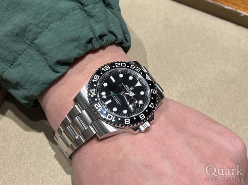 M様 この度は数ある時計店からQuark名古屋駅店をお選びいただき誠にありがとうございます。記念でのご購入に携わらせていただく事ができ、私も嬉しく思います。ご購入いただきましたお時計『Ref.126710GRNR』は2024年に登場をして以降、じわじわと人気が上がり続けており、今後に期待のできるベゼル色になります。シンプルなオイスターブレスと、煌びやかなジュビリーブレスがありますが、M様にはジュビリーブレスが大変お似合いでした。ROLEXの中でもデイトナに次ぐ人気があり、ステイタスとしても間違いない一本だと思います。M様の自慢の一本になるかと思います、これからのROLEXライフをご堪能くださいませ。また当店でブレス洗浄、タイムチェックも無料で行っておりますので、お近くにお越しの際は是非遊びにいらしてくださいませ。お使いいただく上で何かご不明な点等ございましたら、また後藤までご相談ください。今後とも末永いお付き合いの程よろしくお願いいたします。