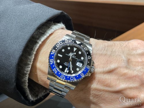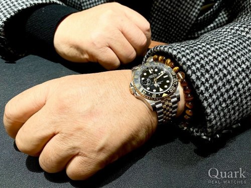 K様 いつもクォーク名古屋駅店をご利用頂き、誠にありがとうございます。Ref.126710BLROは個性的なベゼルカラーになりますが、嫌みがない為、フォーマルな装いにも合わせて頂くことが出来ます。ジュビリーブレスとの相性も抜群に良いデザインですね!念願のGMT-MASTERⅡになりますので、きっと愛着も湧くと思います。今まで同様、大切なお時計をしっかりサポートさせて頂きますので、何か気になる事が御座いましたら、遠慮なくご相談下さい。