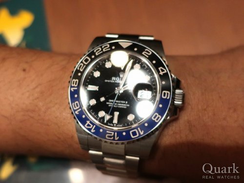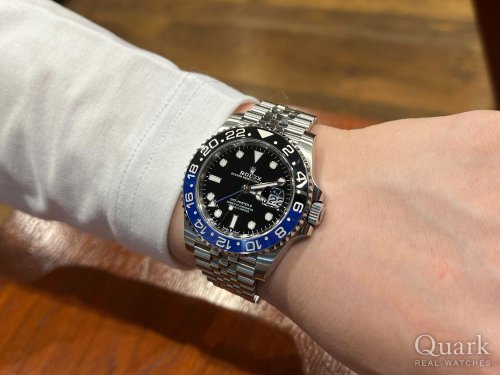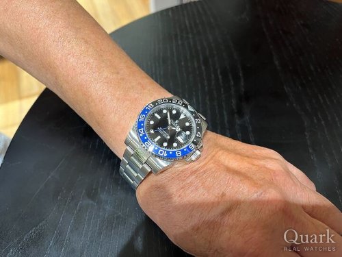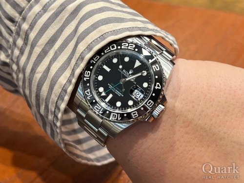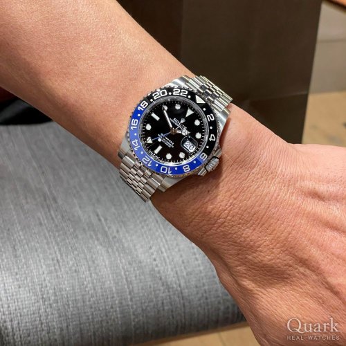 S様、いつもクォーク銀座店をご利用いただき誠にありがとうございます。お選びいただきました「GMTマスターII」は、スポーツモデルで唯一ジュビリーブレスが採用されており、他のモデルでは味わえない特別感にあるモデルでございます。通称「バッドマン」と呼ばれる青と黒のベゼルがカッコイイですね。また何か気になるモデルがありましたらご相談くださいませ。よろしくお願い申し上げます。