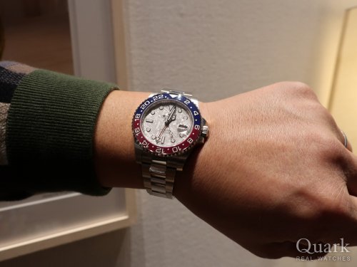 S様 いつも有難うございます。S様とは13年弱のお付き合いをさせて頂き、数多くのモデルのお取引をさせて頂きました。ご自宅から近くに弊社店舗があるにも関わらず、ご足労頂けた事、大変嬉しく思います。今回はメテオライトのGMTをお求め頂き、これでGMTはYGとPGとWGの3種類が揃いましたね!このようなバリエーションをお持ちのお客様はS様しか存じ上げません・・・。羨まし限りです!引き続き、精一杯ご対応したく思いますので、どうぞ宜しくお願いいたします。クォーク心斎橋店 店長 宮崎