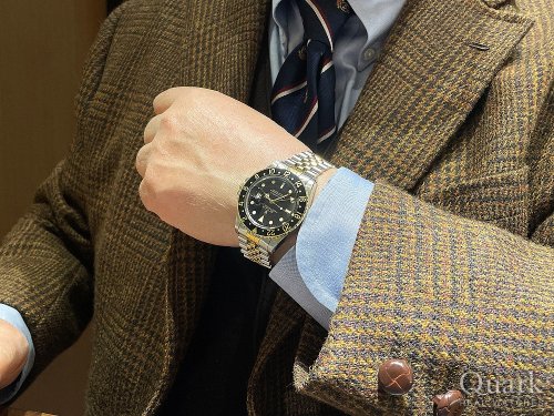 お選びいただきましたRef.16753「GMT-MASTER」は、生産期間も短く、入荷の少ないモデルです。この度はコンディションも良く、付属品もある個体をご案内できたことを嬉しく思います。イエローゴールドのコンビモデルではございますが、嫌味なく着用もしやすいので、ご愛用いただけますと幸いです。今回のブラウンのジャケットとも相性バッチリでございました。また何か御座いましたら私迄、お気軽にお申し付けくださいませ。今後とも末永いお付き合いの程、よろしくお願いいたします。