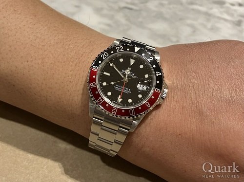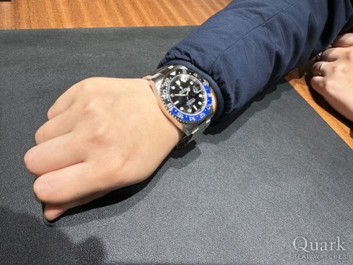 M様 いつもクォーク名古屋駅店をご利用頂き、誠にありがとうございます。GMTの青黒ベゼルは個性的なカラーでありながらも、都会的で洗練された大人のスポーツモデルという印象を受けます。ジュビリーブレスになるとより大人の雰囲気が出ますね。今までM様が所有された時計とも一味違った雰囲気になりますので、新しい気持ちで楽しんで頂ければ幸いです。これからも他のお時計同様、しっかりサポートに努めさせて頂きますので、何か気になる事が御座いましたら、遠慮なくご相談下さい。