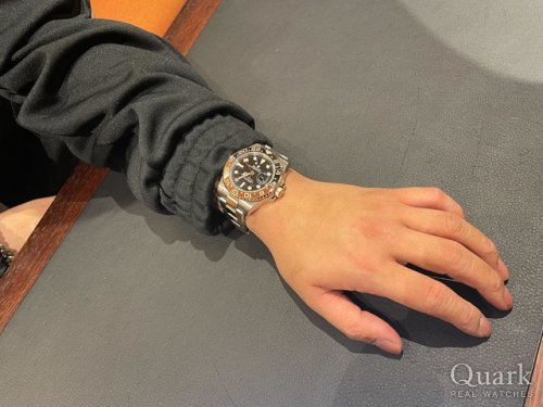 S様、この度はクォーク仙台店をご利用くださいまして誠にありがとうございます。この度S様がお選びになられた『GMT-MASTER II Ref.126710BLRO』は、2018年の発表から現在までロレックスのラインナップの中でもアイコン的立ち位置のモデルでございます。現行スポーツモデルの中でも唯一ジュビリーブレスを採用した、ハイエンドモデルらしい顔立ちもあり、世界中で支持を得ている人気の1本となりますので、存分にお楽しみいただけますと幸いです。尚、仙台店ではブレスレットの洗浄も無料で行っております。ご使用に際して気になる点などございましたら、お気軽にお申し付けくださいませ。今後とも末永いお付き合いのほど、よろしくお願い申し上げます。