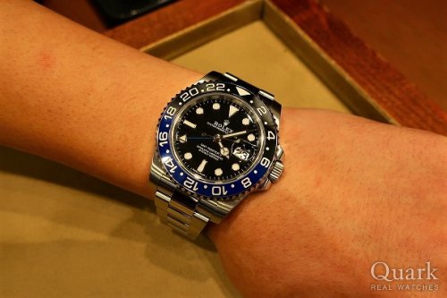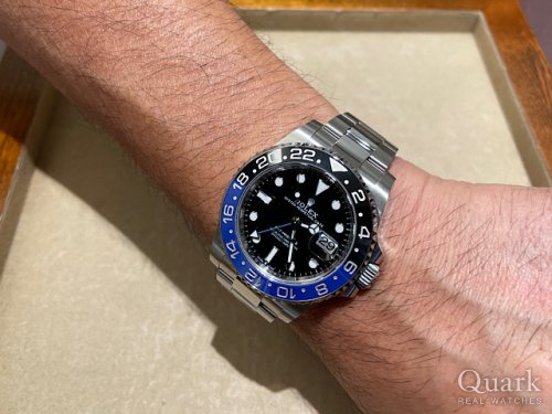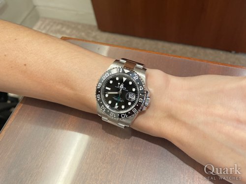 N様 この度は数ある時計店の中からクォーク上野本店をご利用いただき誠にありがとうございます。念願のGMT-MASTER II Ref.116710LNのご購入おめでとうございます!こちらのモデルは2007年から2019年まで製造されており、新品の個体は僅か数本のみと中々ご紹介が難しいモデルとなります。ロレックスのコーポレートカラーでもあるグリーンの24時間針と両回転するセラミック製のベゼルもカッコイイですね!近年、人気も急上昇しているモデルの一つでございますので、これからのロレックスライフを楽しんでいただけますと幸いです。ブレスレットの洗浄及び調整も無料で行っておりますので、お近くにお越しの際は遊びにいらしてくださいませ。お使いいただく上で何かご不明な点等ございましたら、また林までご相談ください。今後とも末永いお付き合いの程よろしくお願いいたします。