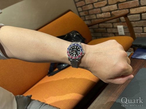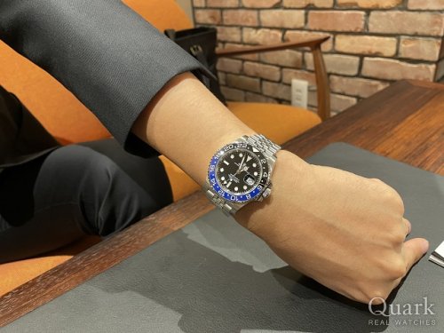 N様 この度は数ある時計店からクォーク名古屋店をご利用いただき誠にありがとうございます。ご購入いただきました『Ref.126710BLRO』はレッド×ブルーのツートンカラーのベゼルで愛称『ペプシ』と呼ばれるGMT-MASTERⅡでございます。ロレックスであまり多用されないレッドを用いている人気のモデルで、最近は入荷も少ないこのモデルを、今回N様にタイミング良くご紹介出来た事、私も嬉しく思っております。また、ブレス洗浄、タイムチェックも無料で行っておりますので、お近くにお越しの際は遊びにいらしてくださいませ。お使いいただく上で何かご不明な点等ございましたら、また久保までご相談ください。今後とも末永いお付き合いの程よろしくお願いいたします。