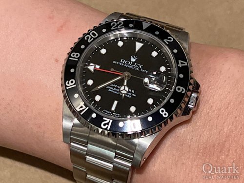 I様 いつもクォーク上野本店をご利用いただき誠にありがとうございます。この度ご購入いただきましたGMT-MASTER II Ref.16710は1988年から2007年頃まで製造されていたロングセラーモデルでございます。特徴的なデザインにチャームポイントである赤色の24時間針が素敵ですね!近年、2000年代の個体も徐々に少なくなってきておりますので、良きタイミングでご購入出来たのではないでしょうか。ブレスレットの洗浄及び調整も無料で行っておりますので、お近くにお越しの際は遊びにいらしてくださいませ。お使いいただく上で何かご不明な点等ございましたら、また林までご相談ください。今後とも末永いお付き合いの程よろしくお願いいたします。